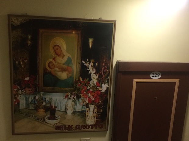 Po príchode do hotela Nativity sme cestou k hotelovým izbám na treťom poschodí narazili na obraz dojčiacej Panny Márie. Takéto vyobrazenie Matky Božej som nielenže nikdy nevidela, ale ani tu v Betleheme nečakala.
