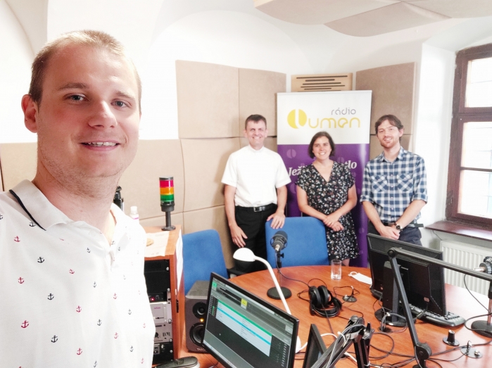 Redaktor Ján Heriban v spoločnosti svojich hostí pri nahrávaní relácie Od ucha k duchu (v premiére 11. júla). Počas tohto víkendu sa zameriame aj na digitálny svet, ktorý nás môže lákať najmä vtedy, ak máme viac voľného času. Reportážne sa vrátime tiež na diakonské a kňazské vysviacky.